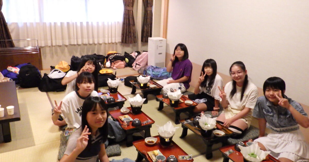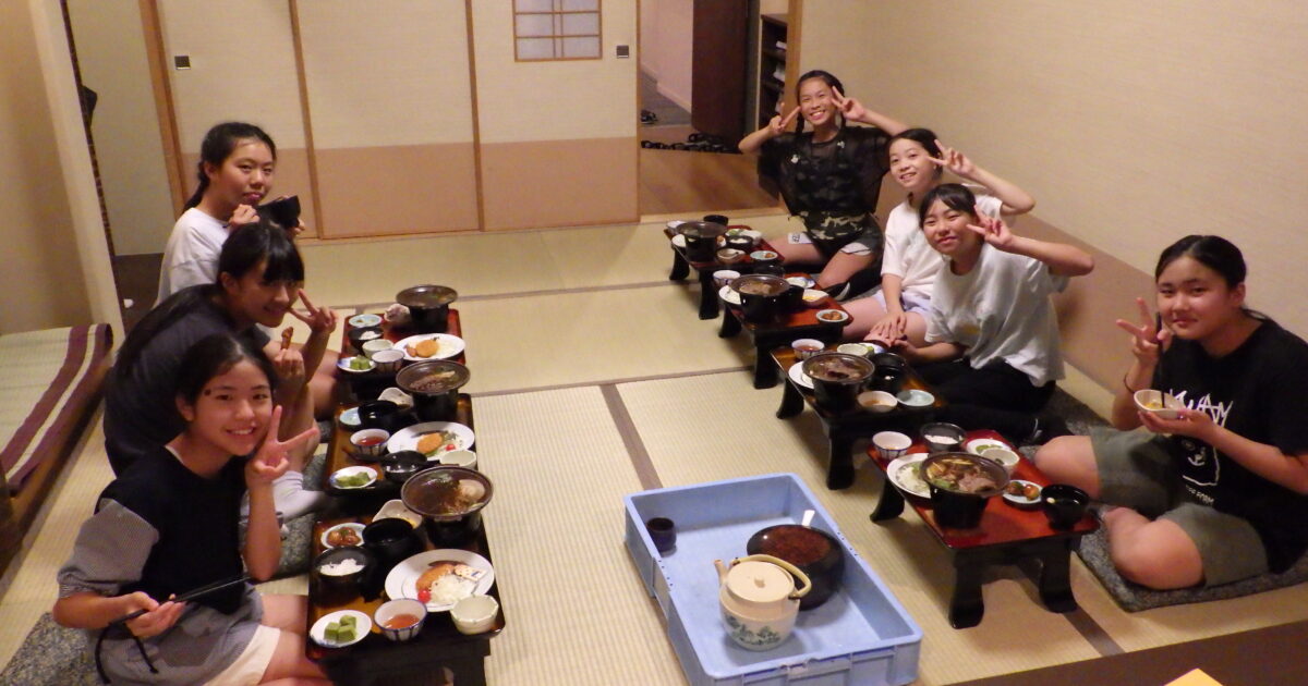 旅館に着いてから夕食をいただき、クラスごとに友禅染の体験活動をしました。 学年のみんなで食べるおいしいご飯に、初めての友禅染体験。 貴重な経験をすることができました!