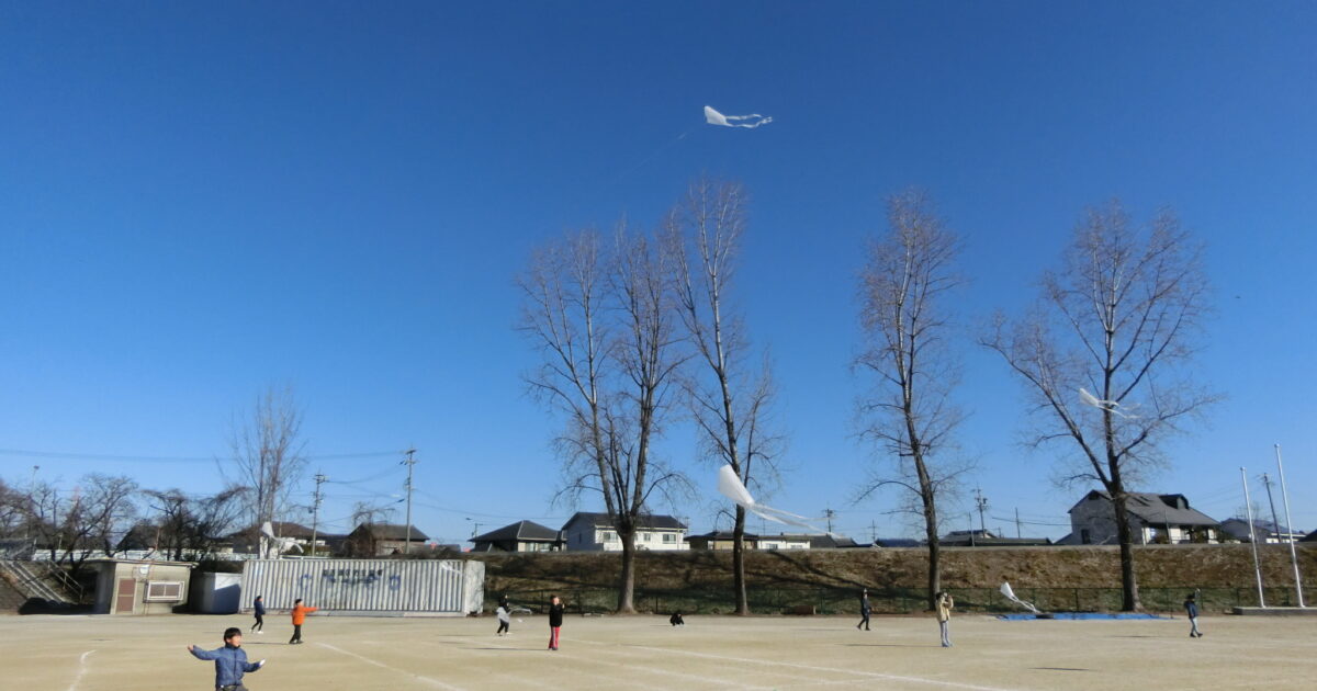 2月2日(月)に2組、3日(火)に1組が、凧あげを行いました。 自分で絵を描いた凧を空高くあげました。 子どもたちは、正月遊びの凧あげを楽しみました。