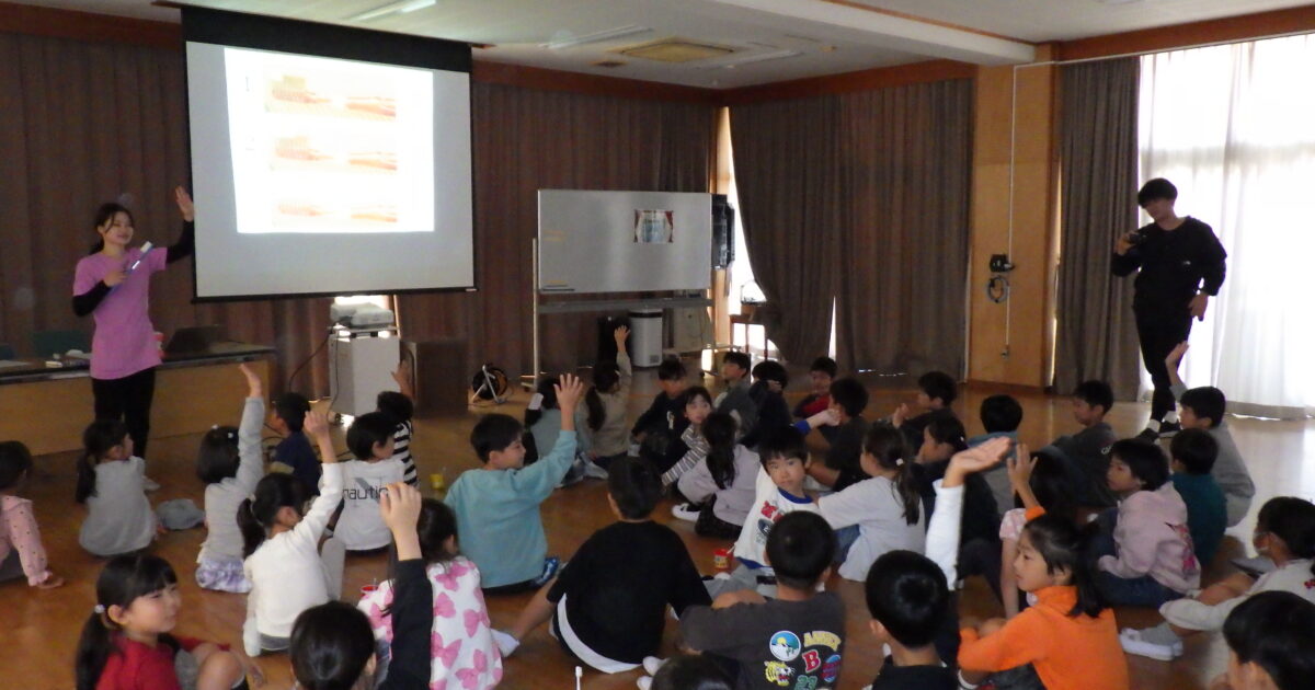 10月30日(木)2限に1年生、3限に2年生、4限に3年生が歯のバトンタッチ運動を行いました。 学校歯科医の月星先生から、歯の大切さや磨き方について教えていただきました。今回の授業を受けて、子どもたちにはこれからも歯を大 […]