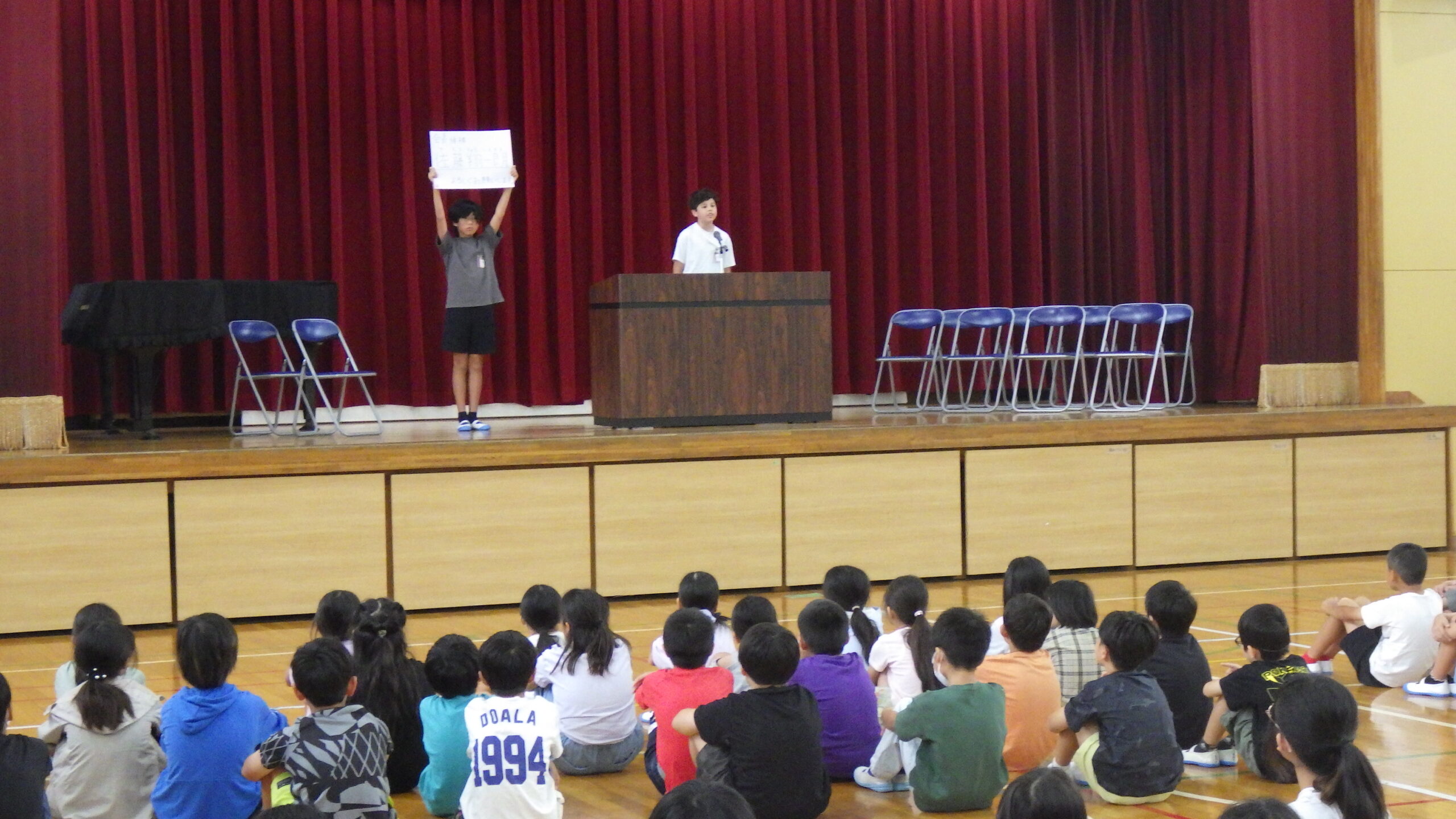 よりよい須西小学校にしたいという思いで、児童会役員に立候補してくれました。立ち合い演説会では、「みんなが楽しいと思える学校にしたい」「こんな企画をやってみたい!」「須西小のよいところをもっとのばしたい」など、それぞれの思いがこもった演説を披露しました。演説の後、クラスごとに投票を行いました。今回は定員ちょうどの立候補者数だったので、信任投票になりました。