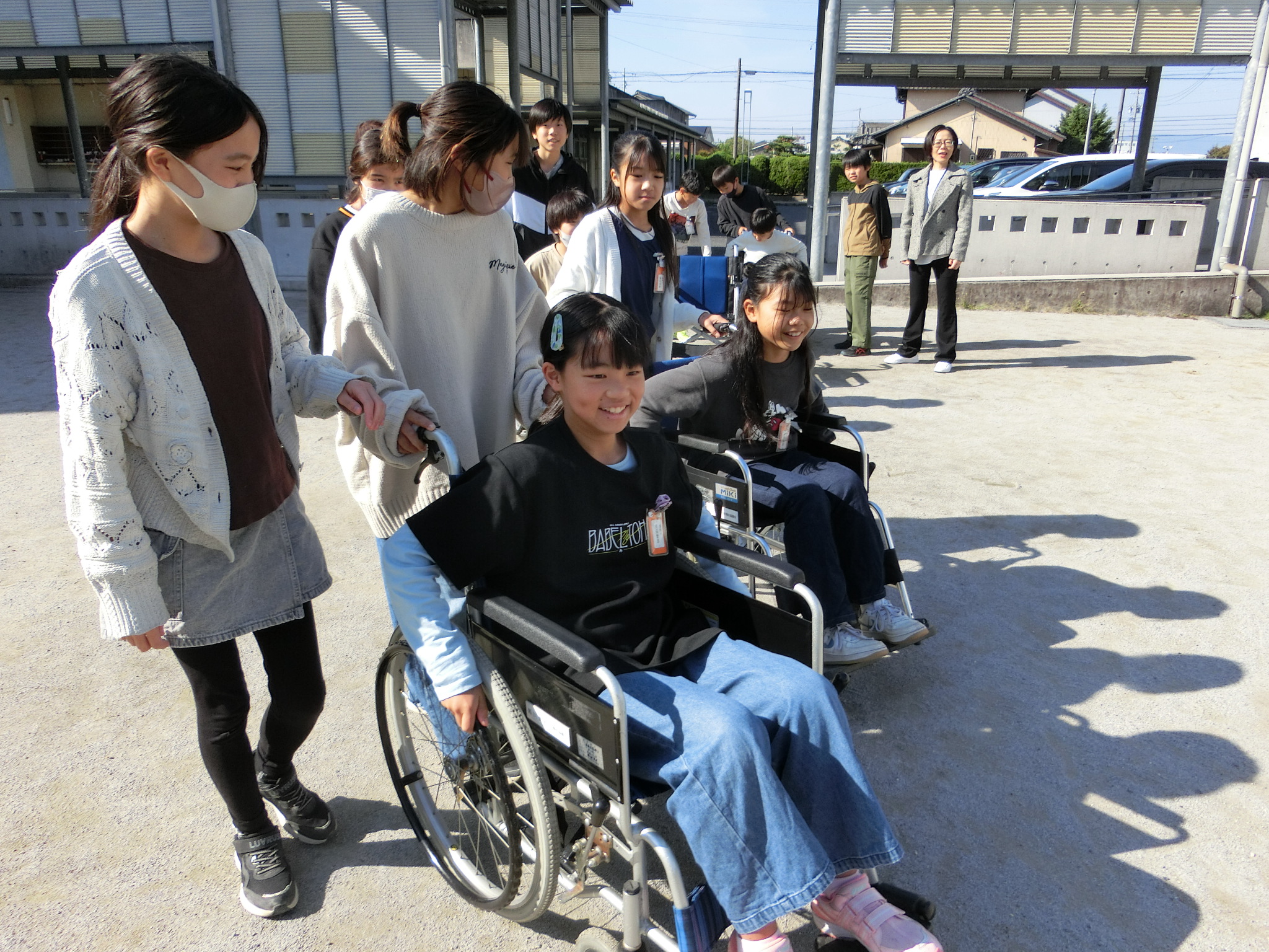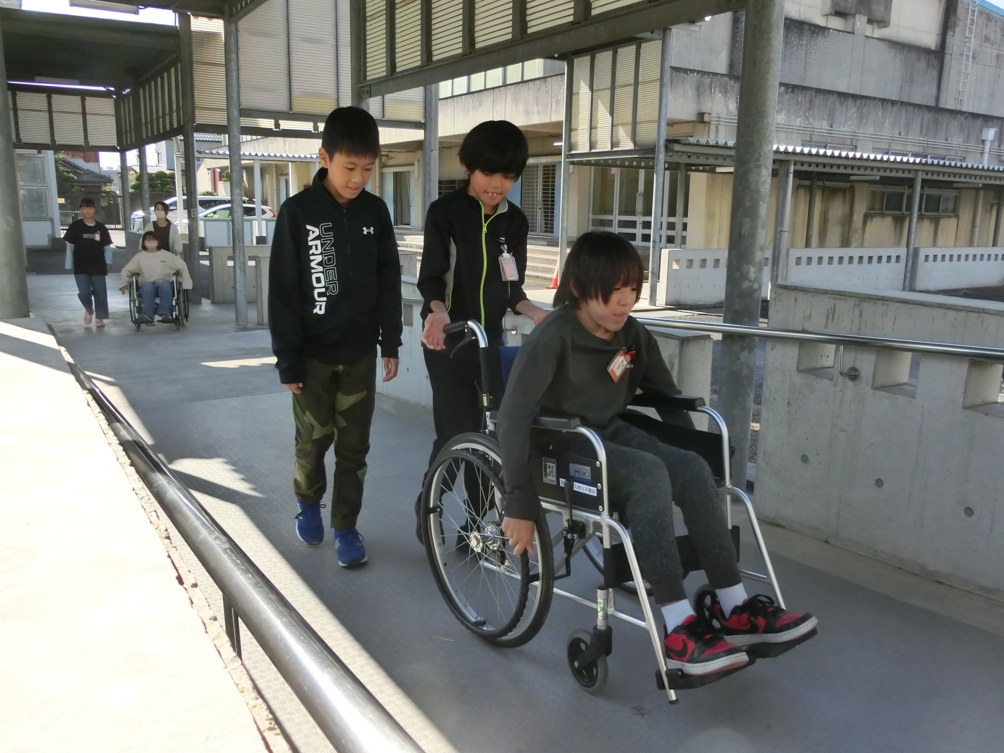 5年生は、愛知県街づくり事業グループの方々に、車いす体験の出前授業をしていただきました。