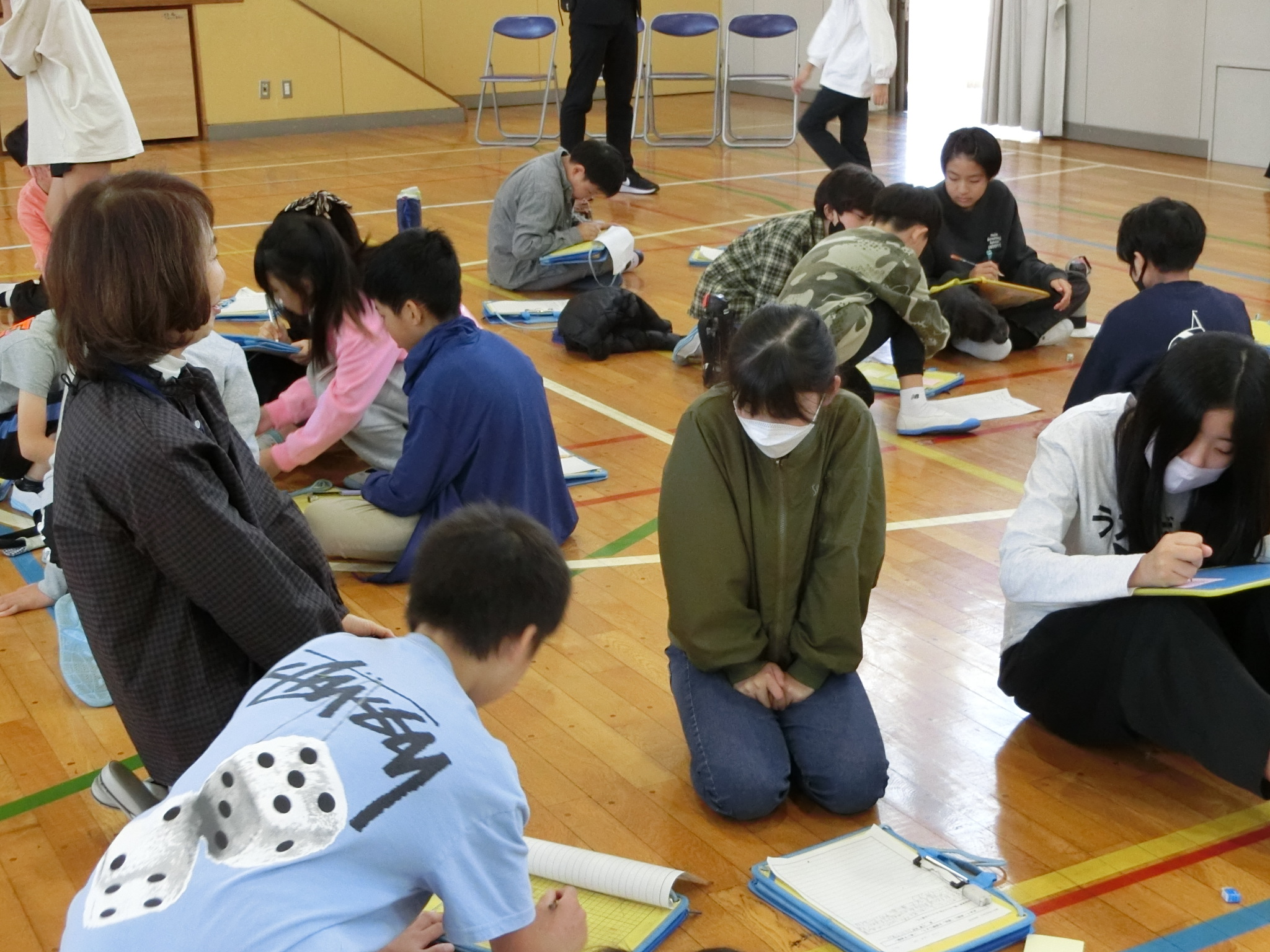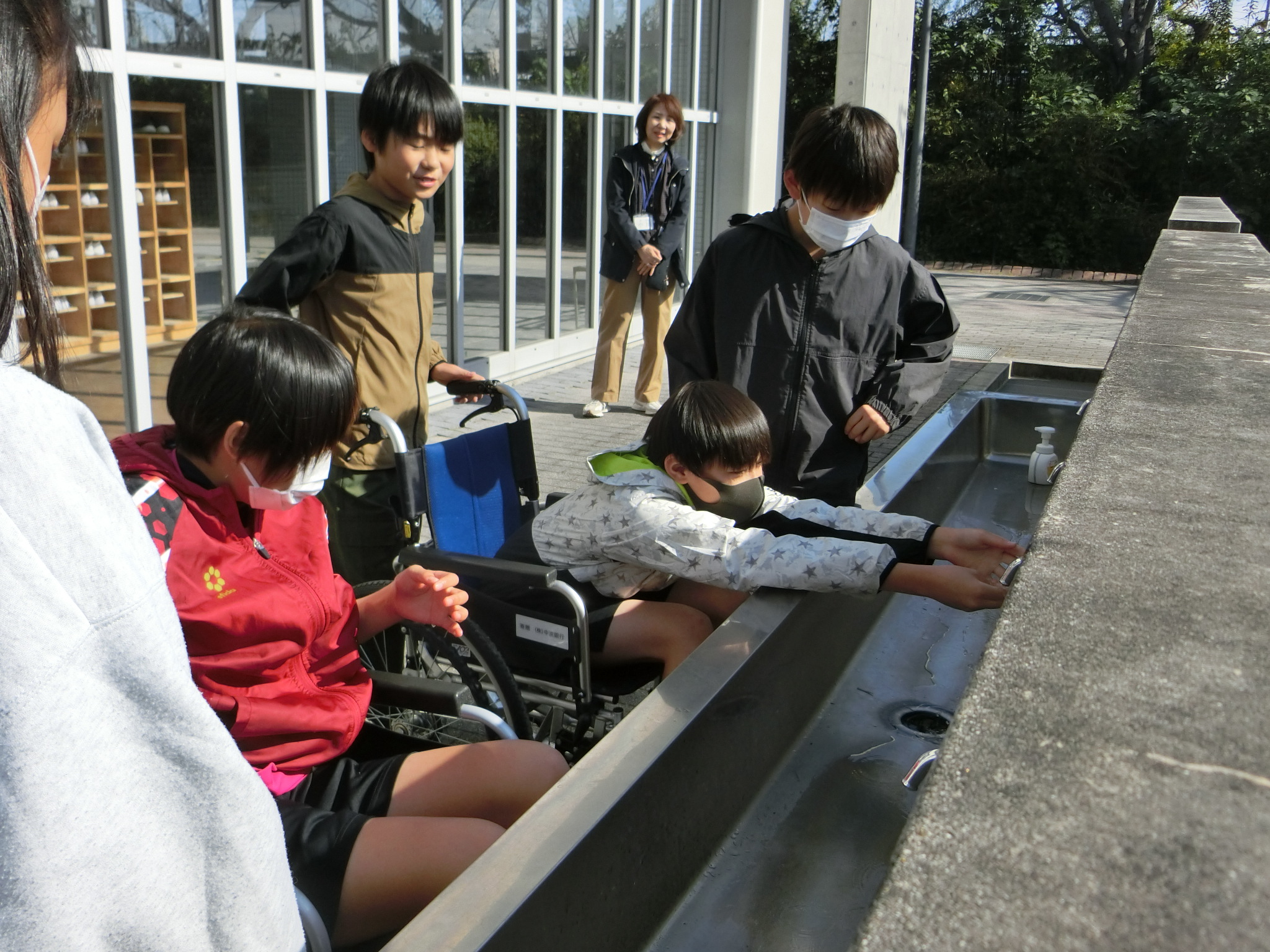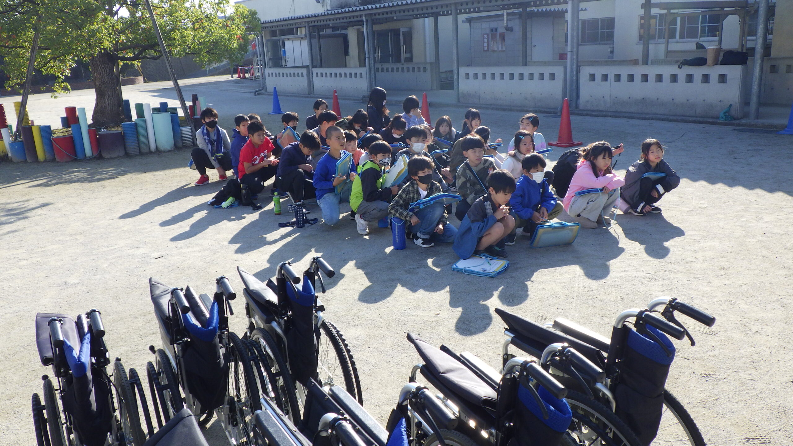 子どもたちは、実際に車いすに乗って自分の力で操作したり、坂や段差を登ったりすることで、車いすで生活している方の大変さを感じました。また、車いすの補助をすることの難しさも感じました。体験後は、車いすに乗ってみて大変だったこと・街中で車いすが使いにくいところ・どうすれば街中で車いすを使いやすくなるのかについて、みんなで考えました。