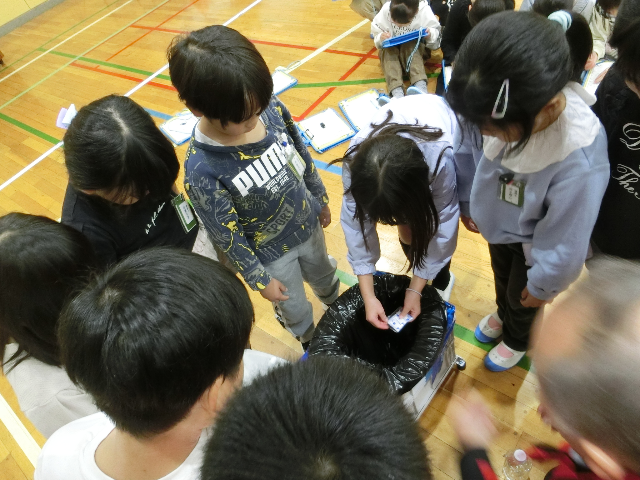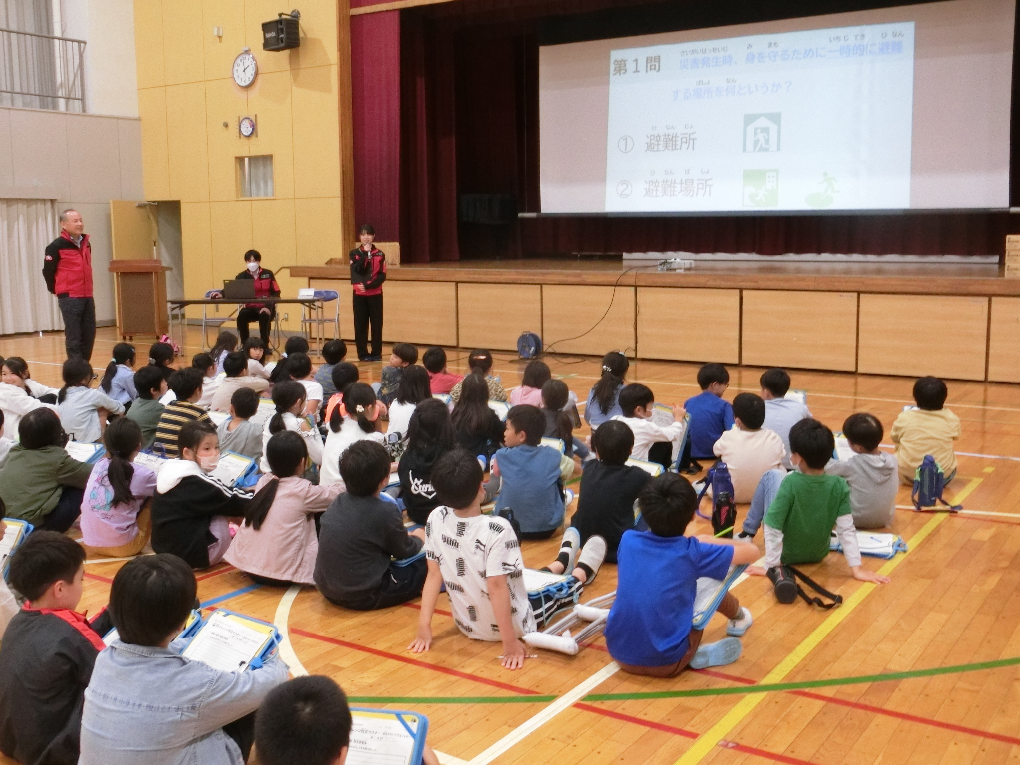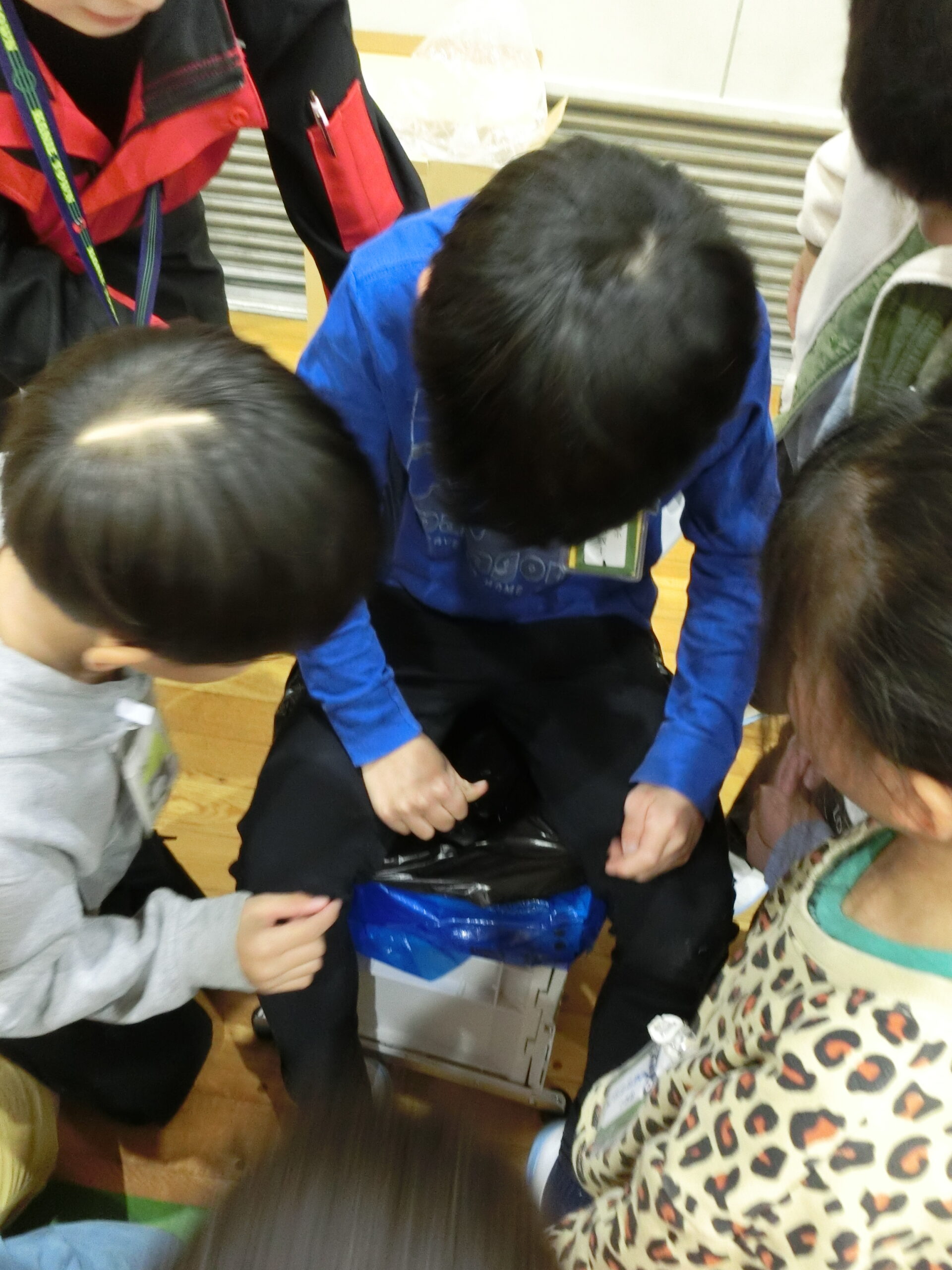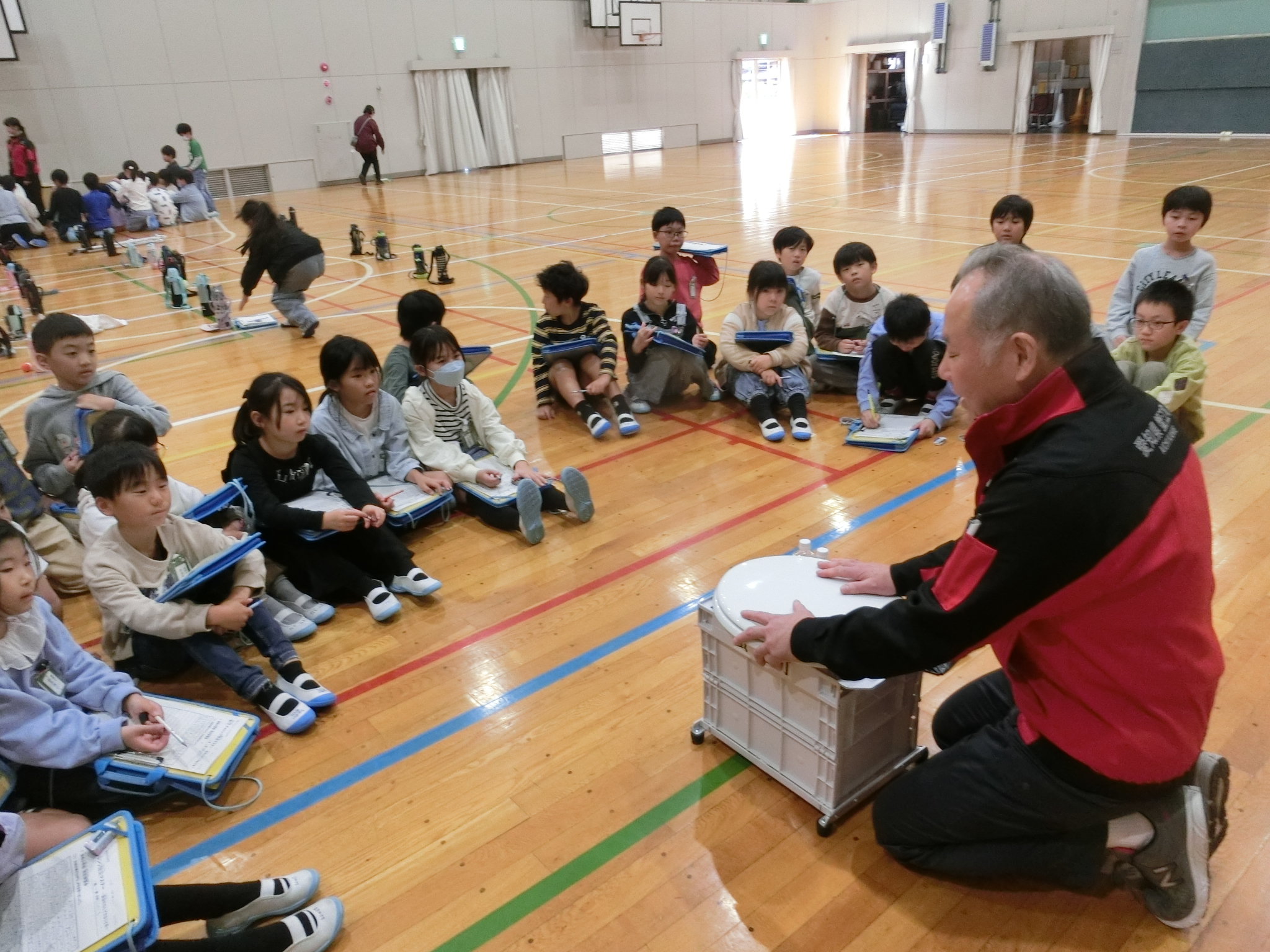 3年生は、蟹江町役場の安心安全課の方をお招きし、須西小学校が避難所になったときのために備蓄してある、簡易トイレの使い方や、段ボールベッドの組み立て方などの体験をさせていただきました。