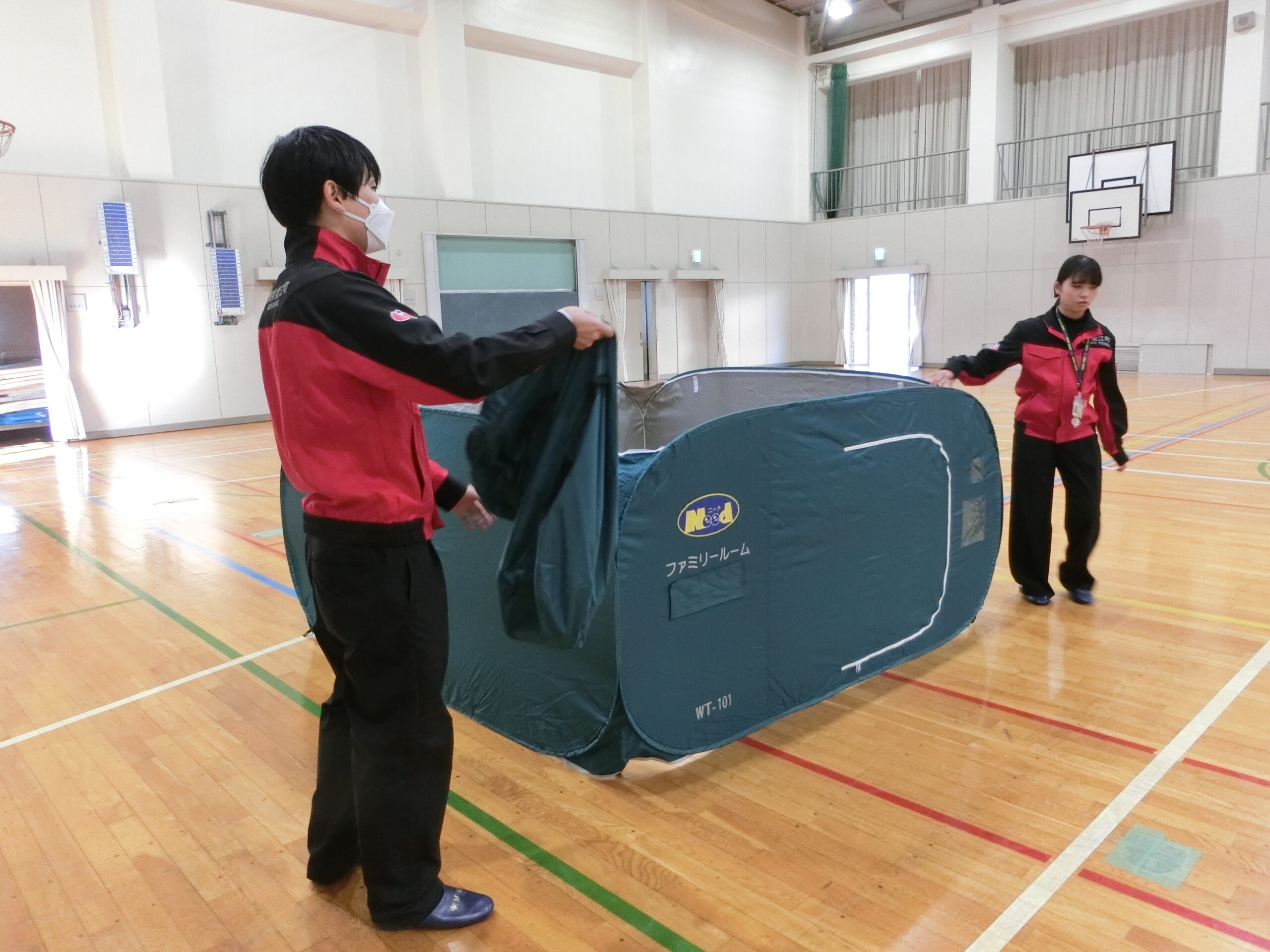 災害が起きて避難したときに使う汚物の凝固剤やパーテーションなど、さまざまなものを実際に使わせていただくことができ、とても勉強になりました。避難時には、トイレの問題が一番多く起こるそうです。各家庭で簡易トイレや凝固剤を準備しておくことが大切だと教えていただきました。