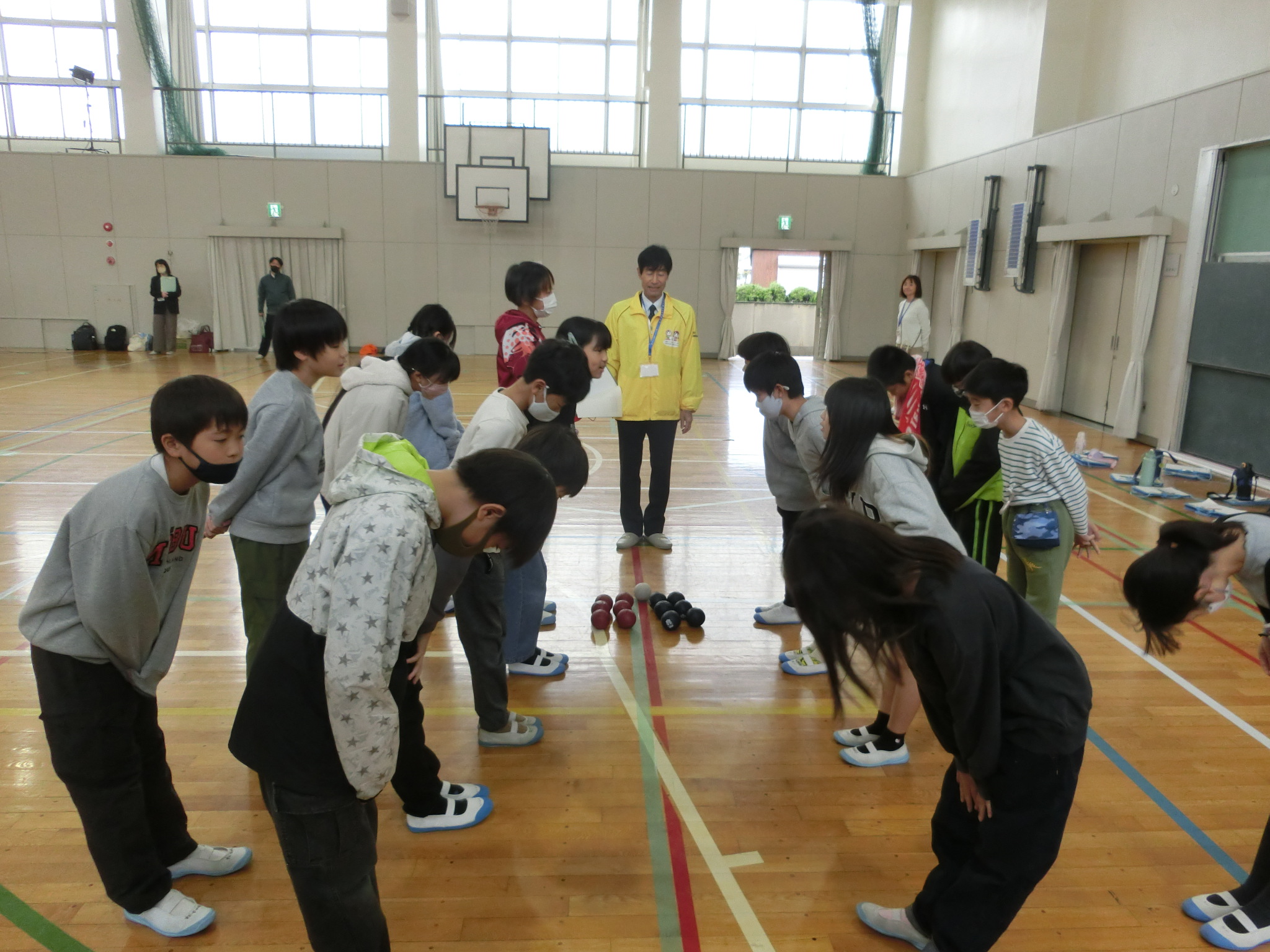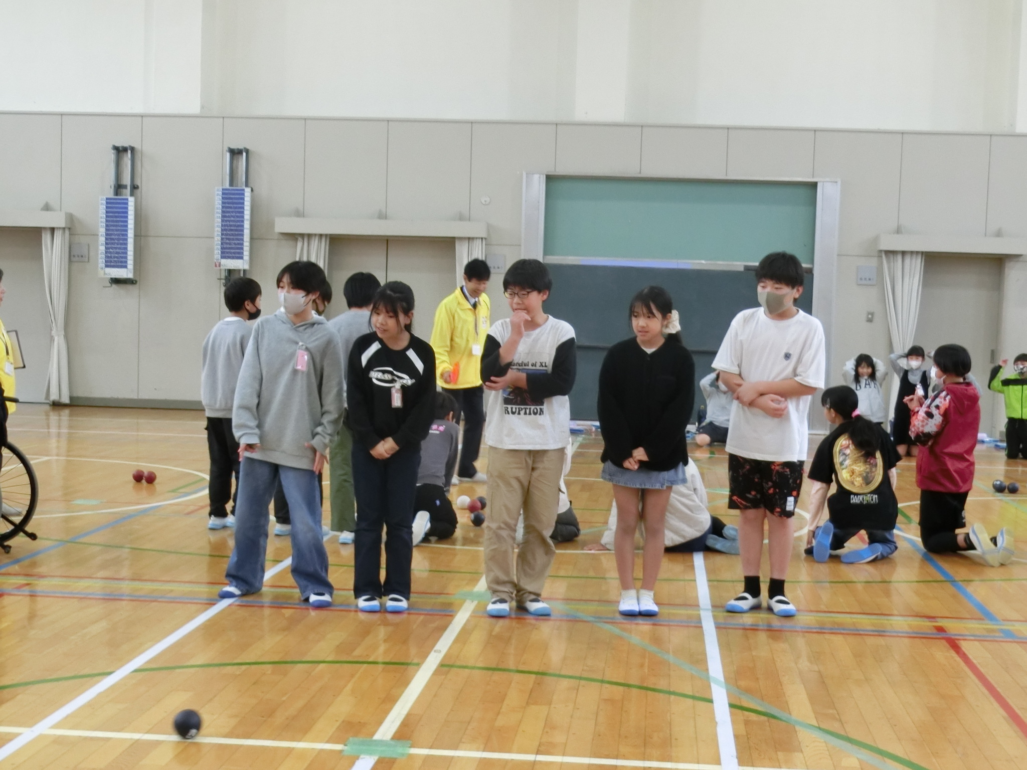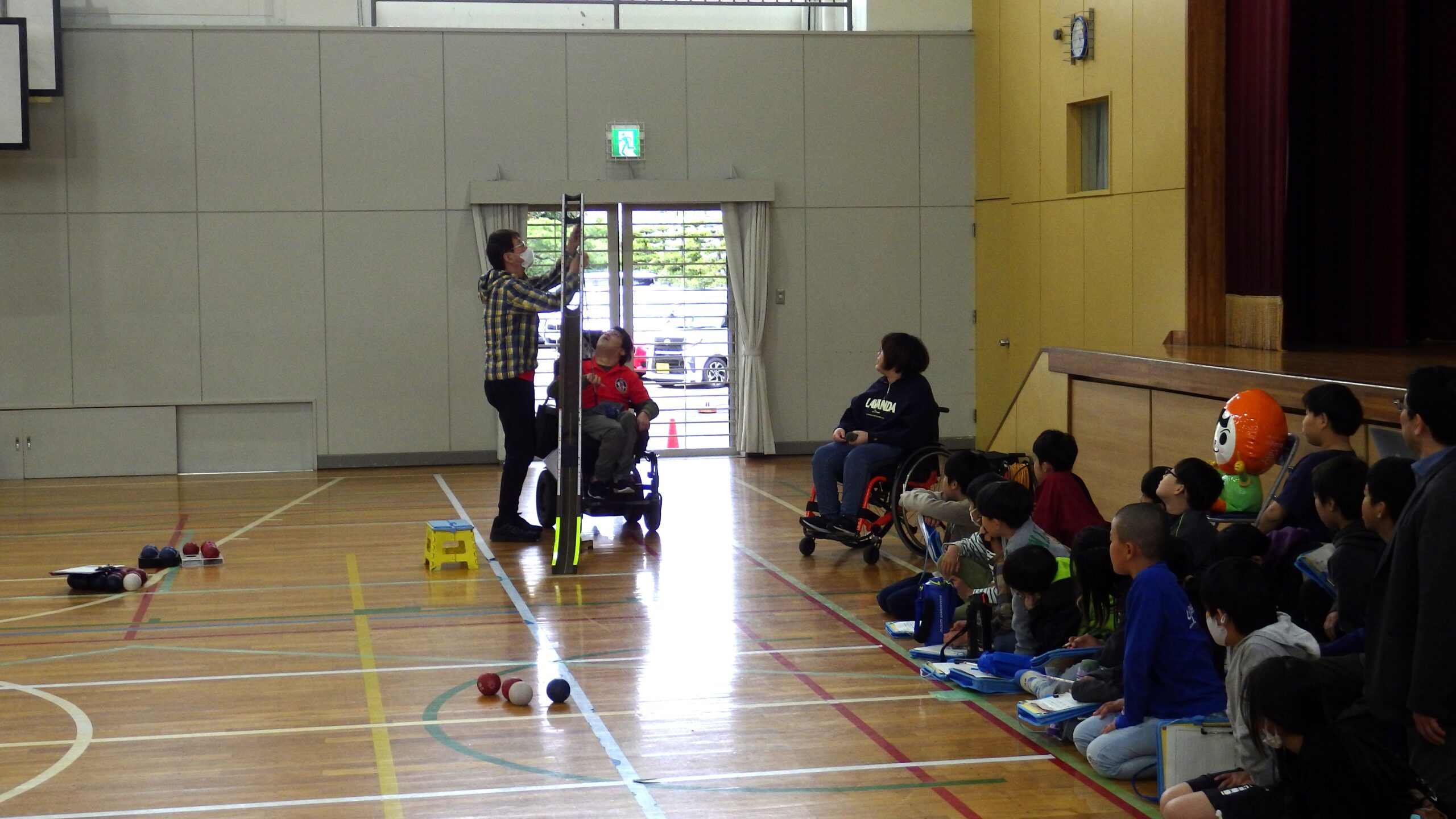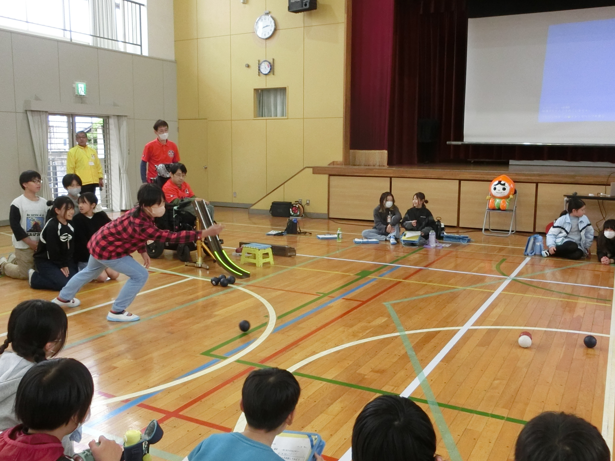 5年生は、パラリンピックに出場した加藤選手をお招きし、ボッチャの体験をしました。ボッチャの体験を通して、パラスポーツへの理解を深めました。体験後の講演では、加藤選手についてや具体的な夢を持つことの大切さについてお話をいただきました。