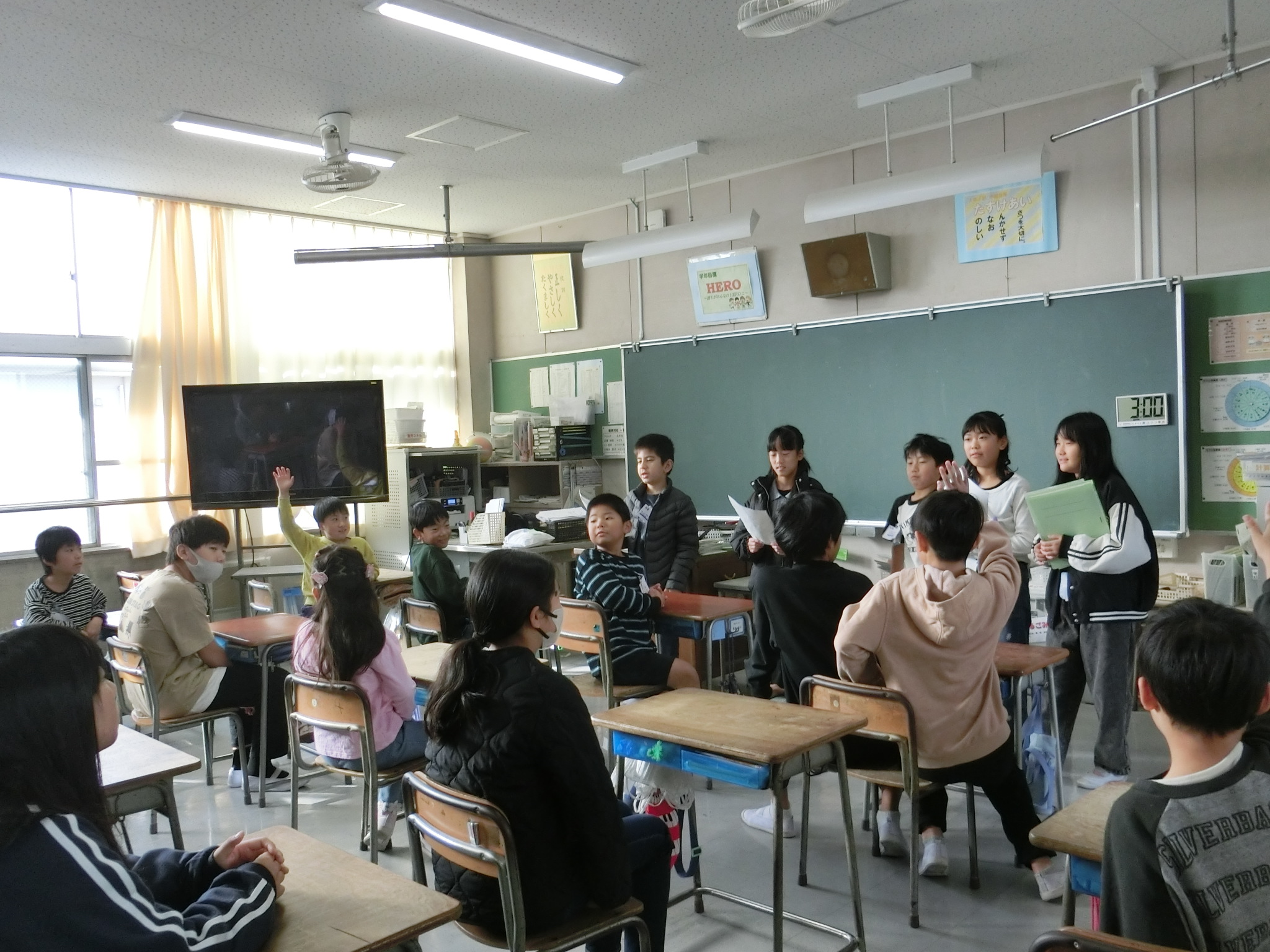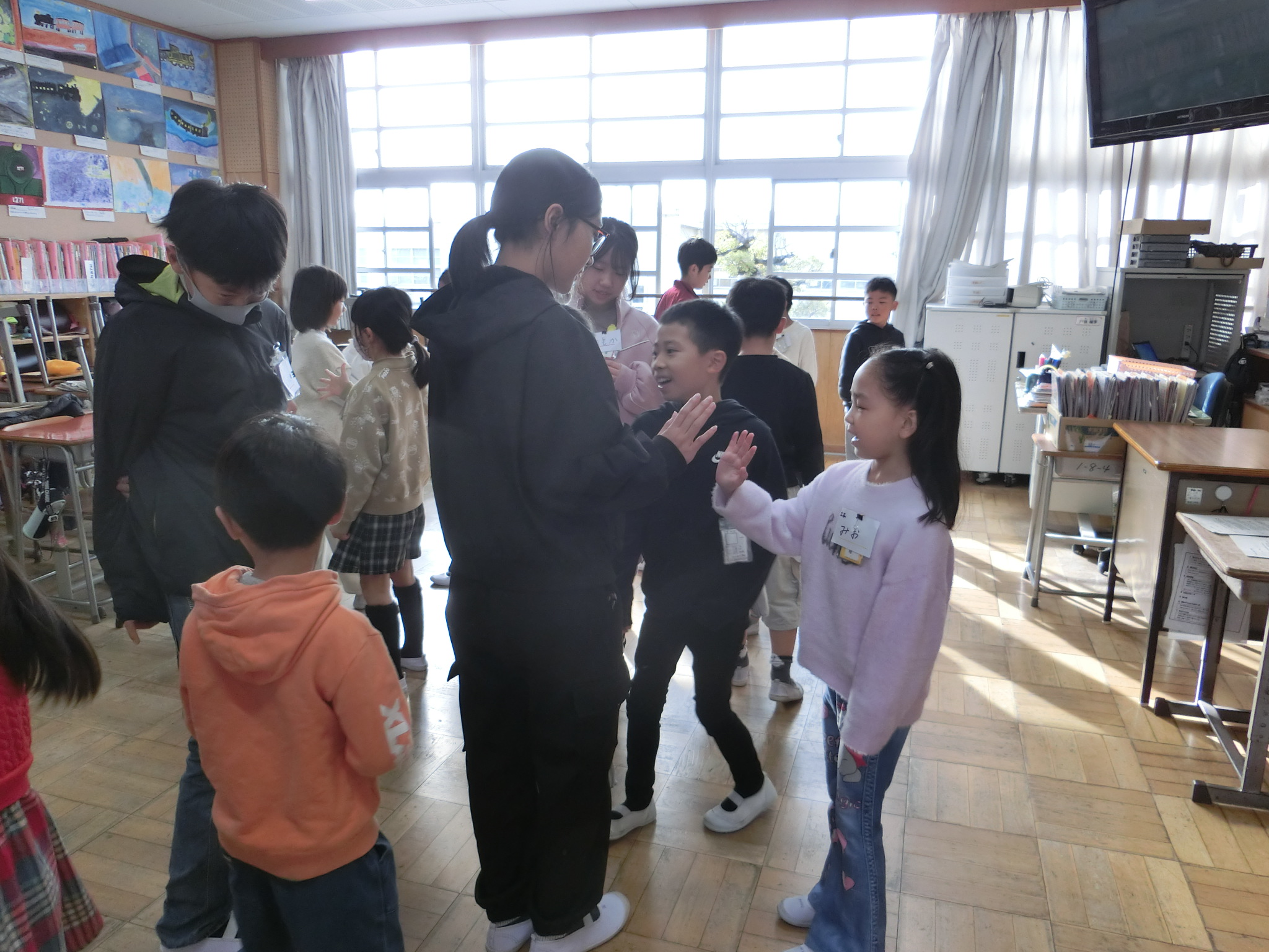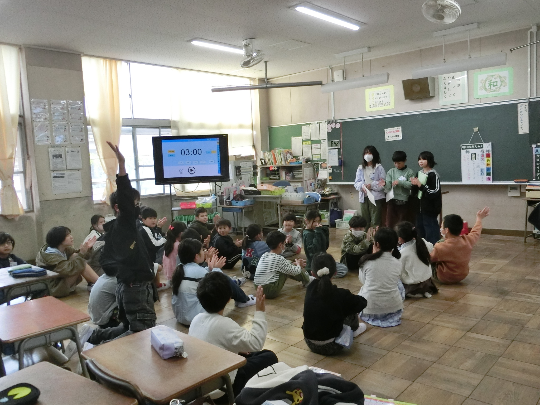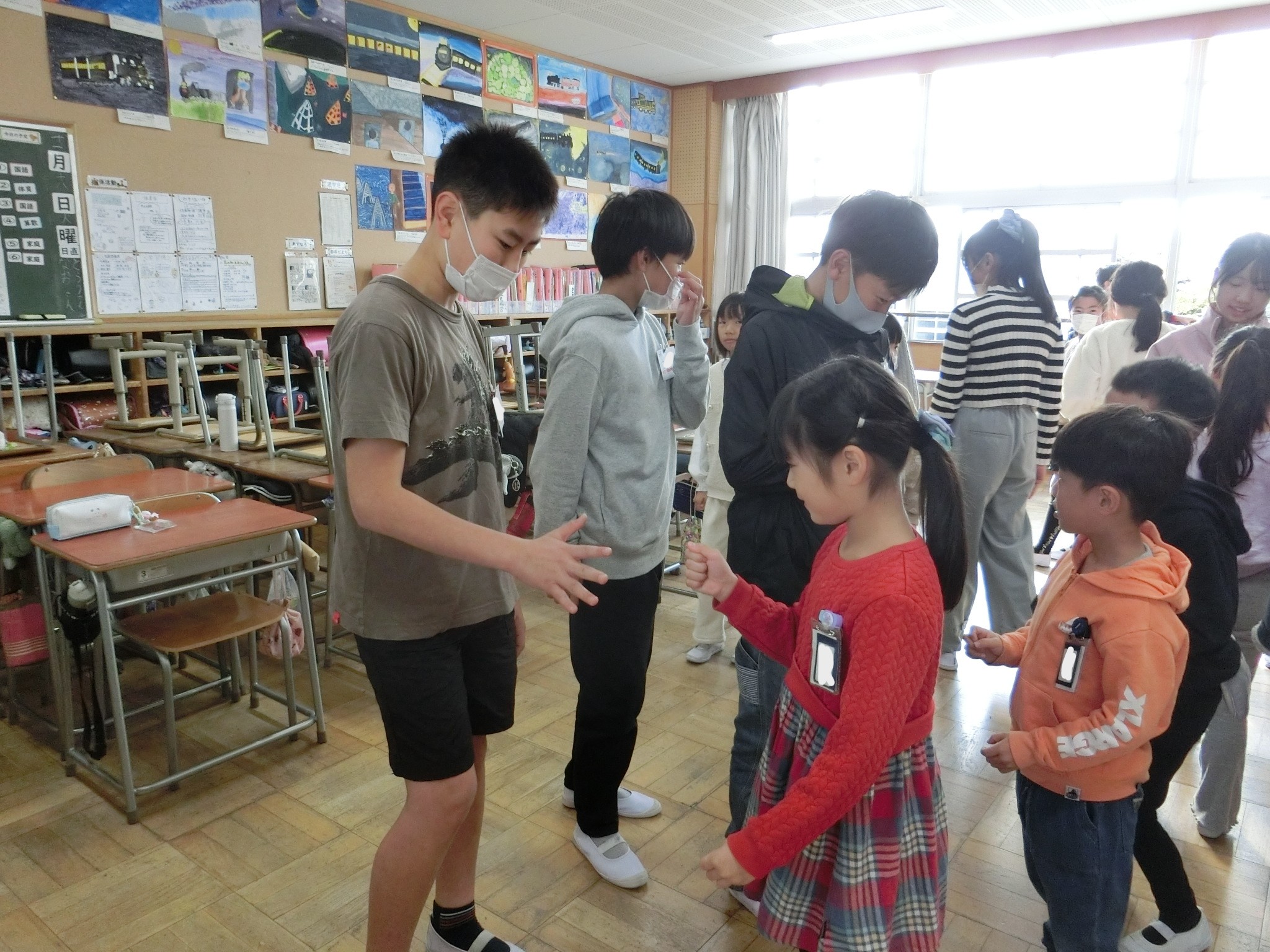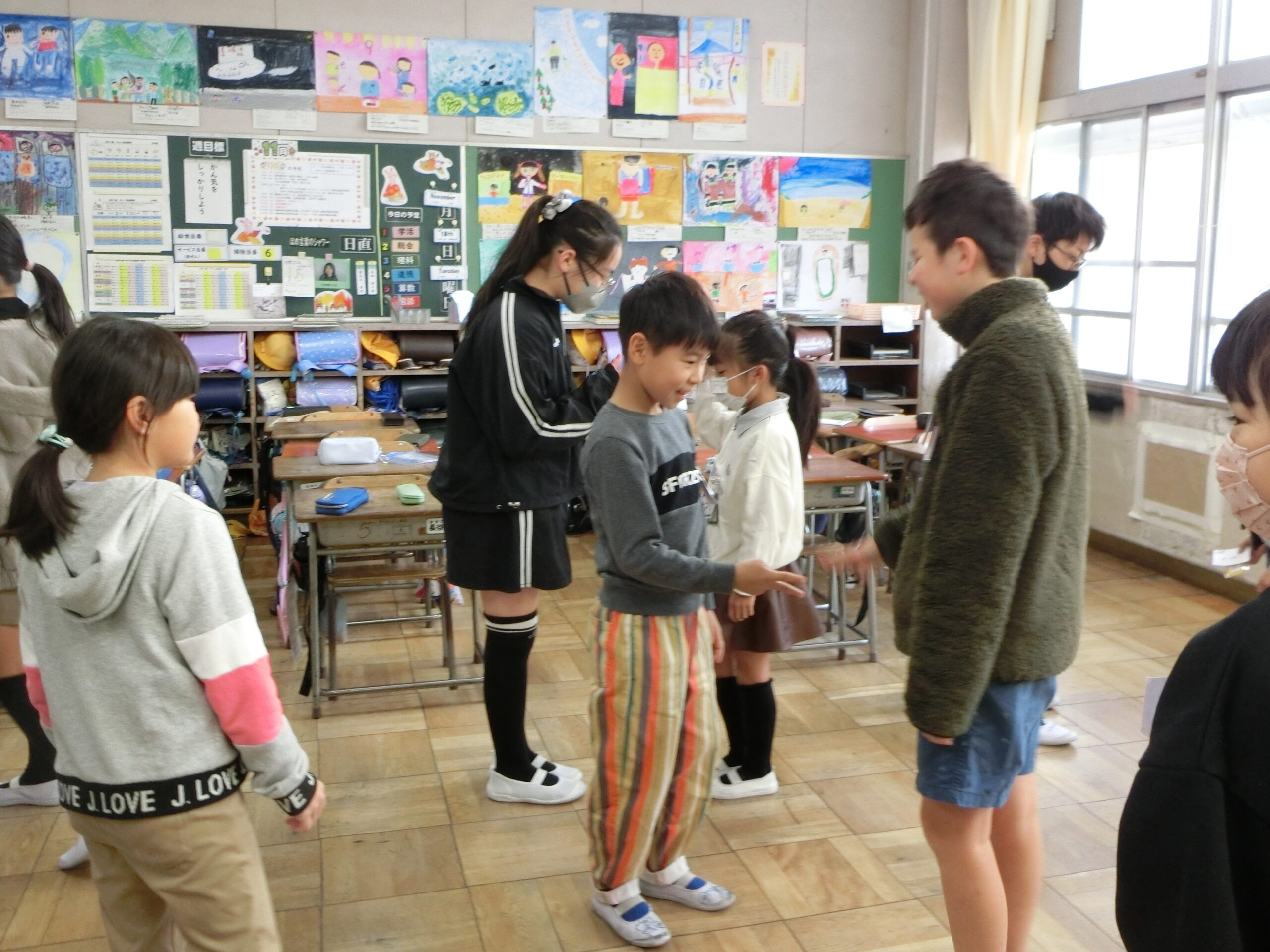 今回は、4年生が中心となって活動しました。まわりじゃんけんゲームを行い、各チームの仲を深めていました。司会進行を務めた4年生にとってもいい経験になりました。次回の活動も楽しみですね。