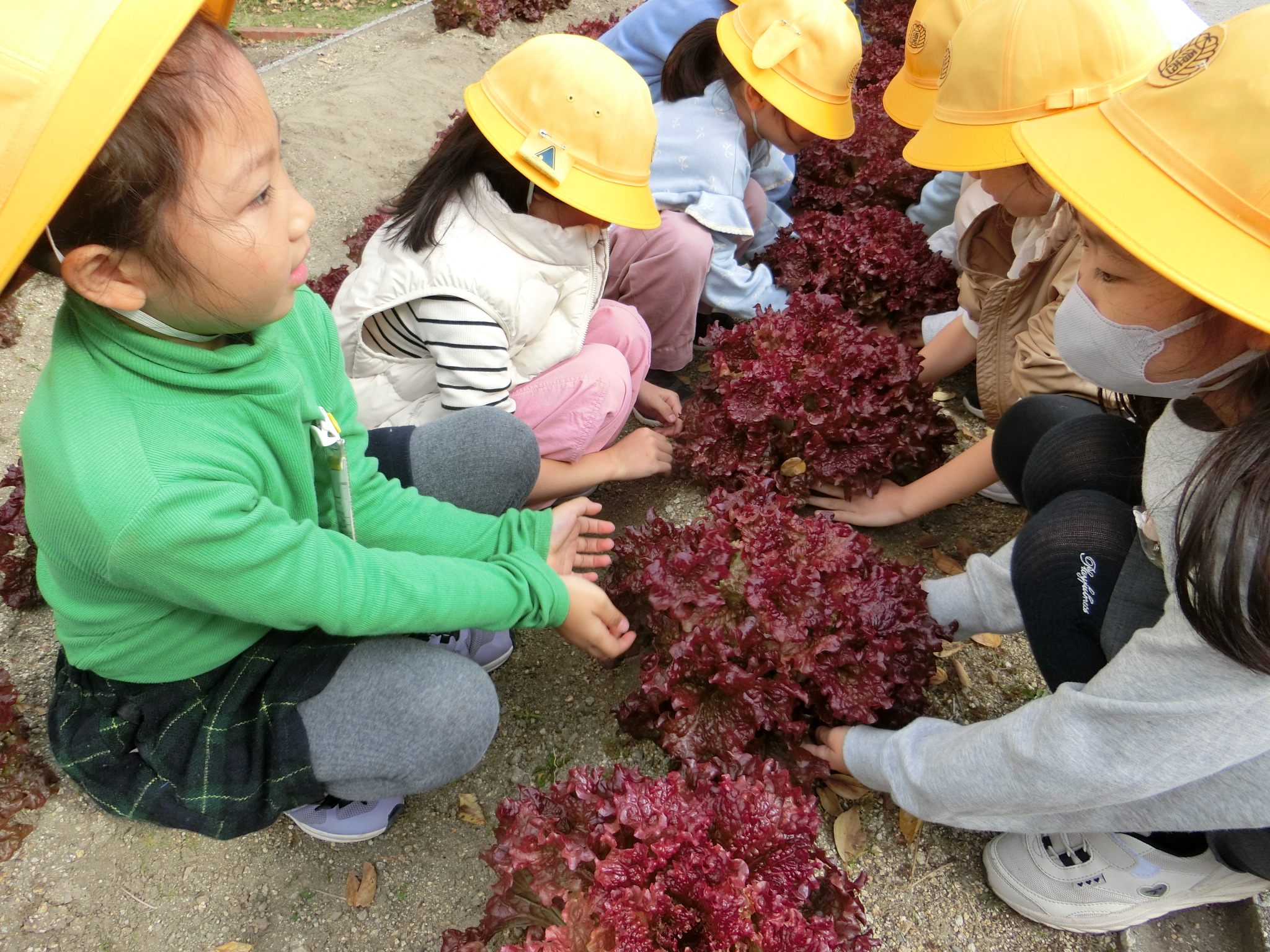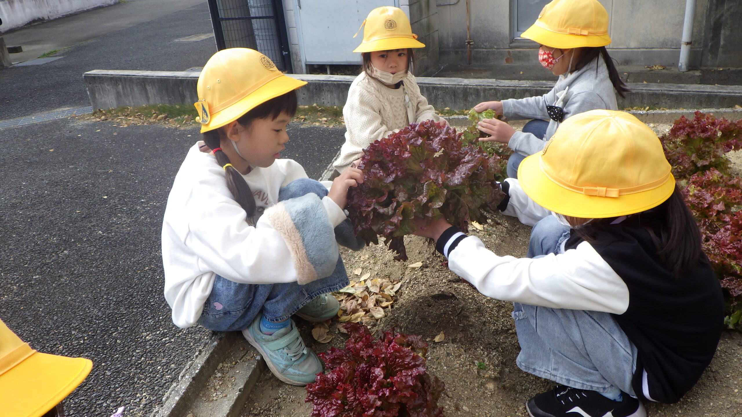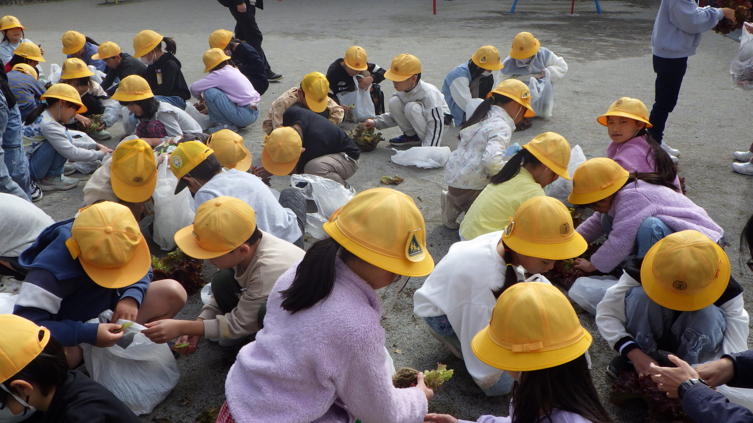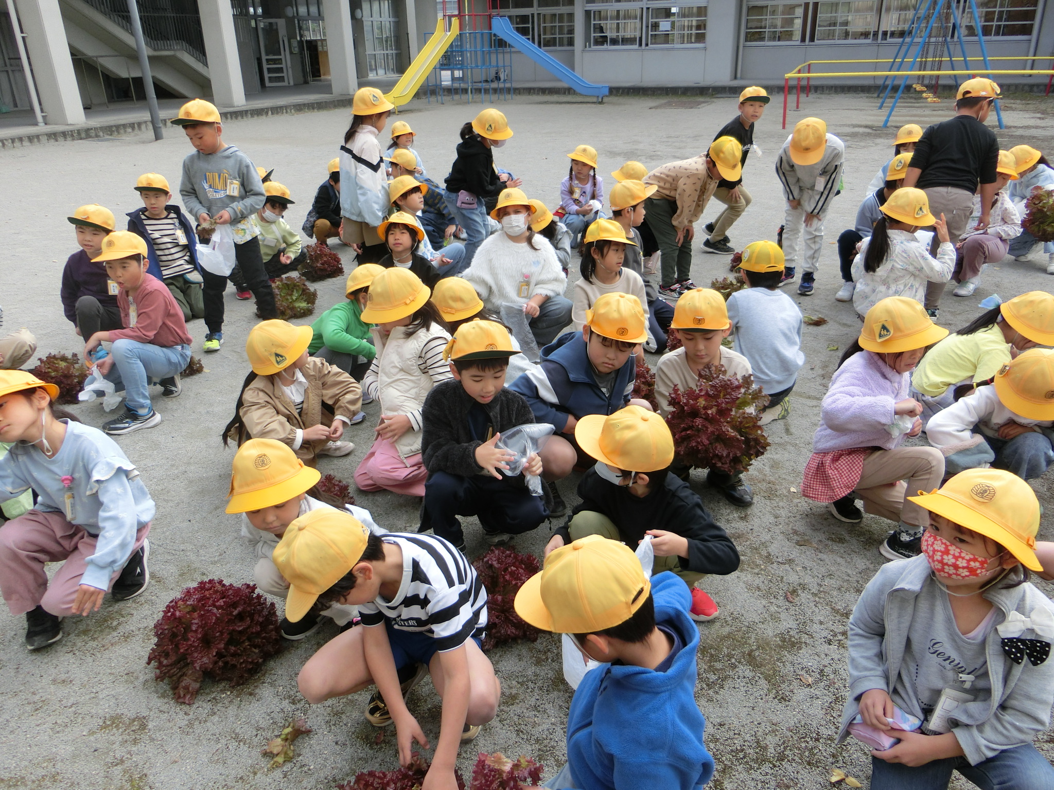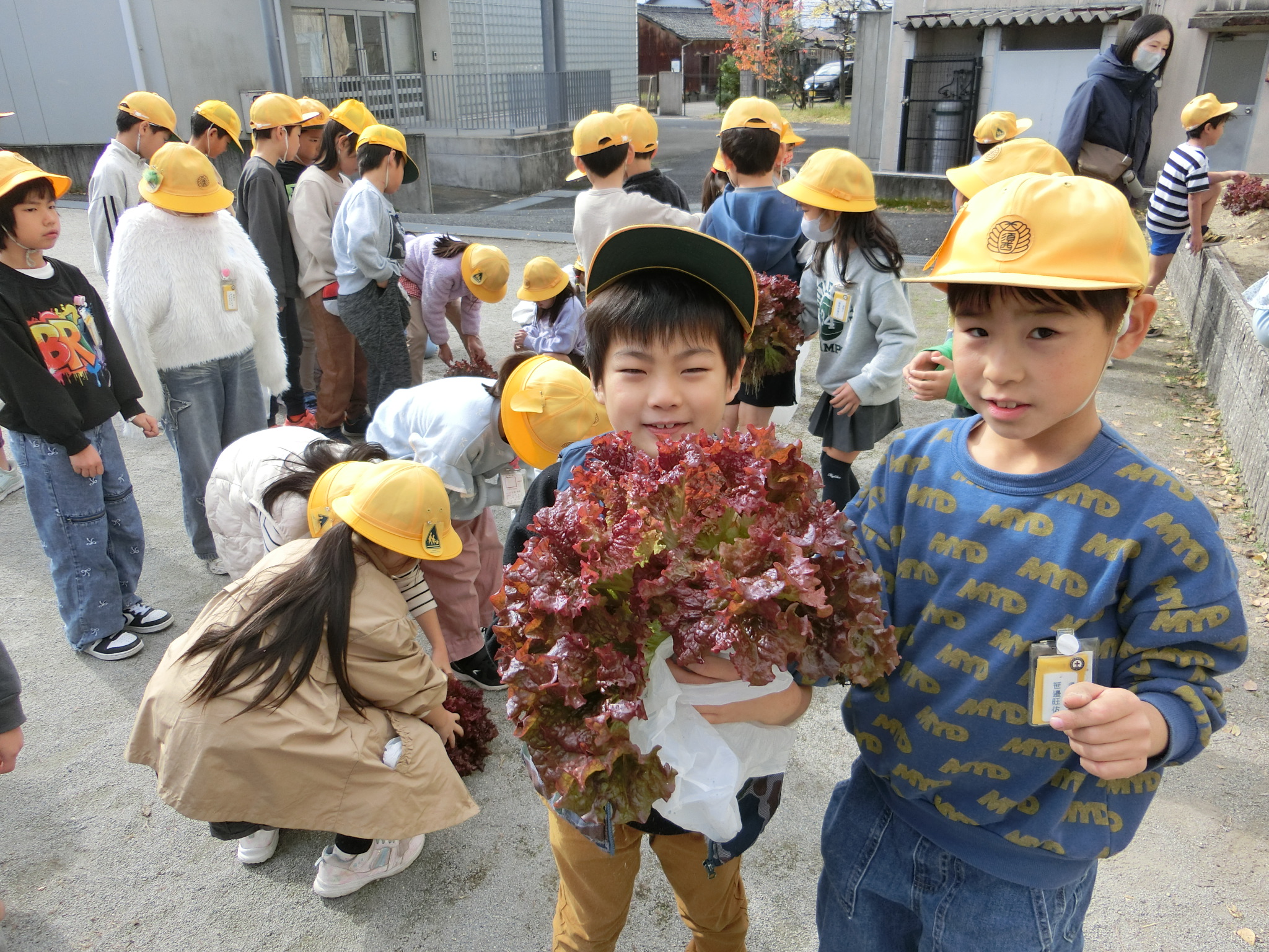 学校ブログ 2年生 リーフレタス収穫 2025.11.25 by sunishi002 11月19日(水)の4限にリーフレタス収穫を行いました。 二人で一つのリーフレタスを、協力して収穫することができました。しっかりと育ったリーフレタスがとても多く、子供たちはすごくうれしそうでした。自然の恵みに感謝する時間となりました。