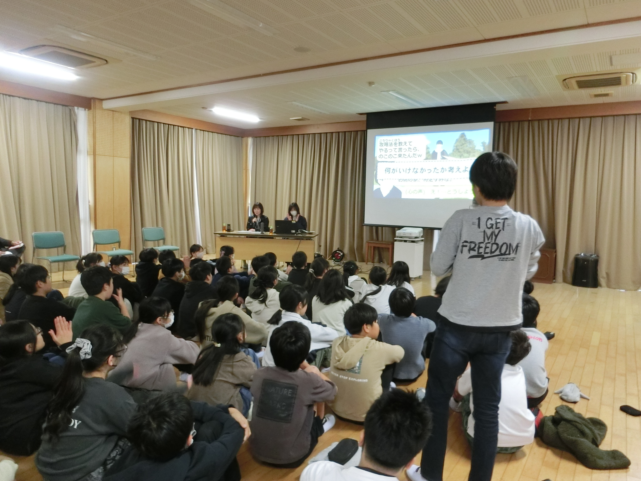 12月5日(金)5時間目に愛知県警の方に来校していただき、情報化社会における人権についてお話をしていただきました。インターネットを活用することが身近になっている今の時代に、SNSを通して起こる問題について、具体的な事例をもとに、何がいけなかったのかを考えました。事例があったことで、子どもたちもより身近に、自分事として考えることができました。近くの友達と話しながらたくさん考える姿が印象的でした。自分がトラブルにまきこまれるだけではなく、誰かを傷つけてしまう可能性があることも学べました。
