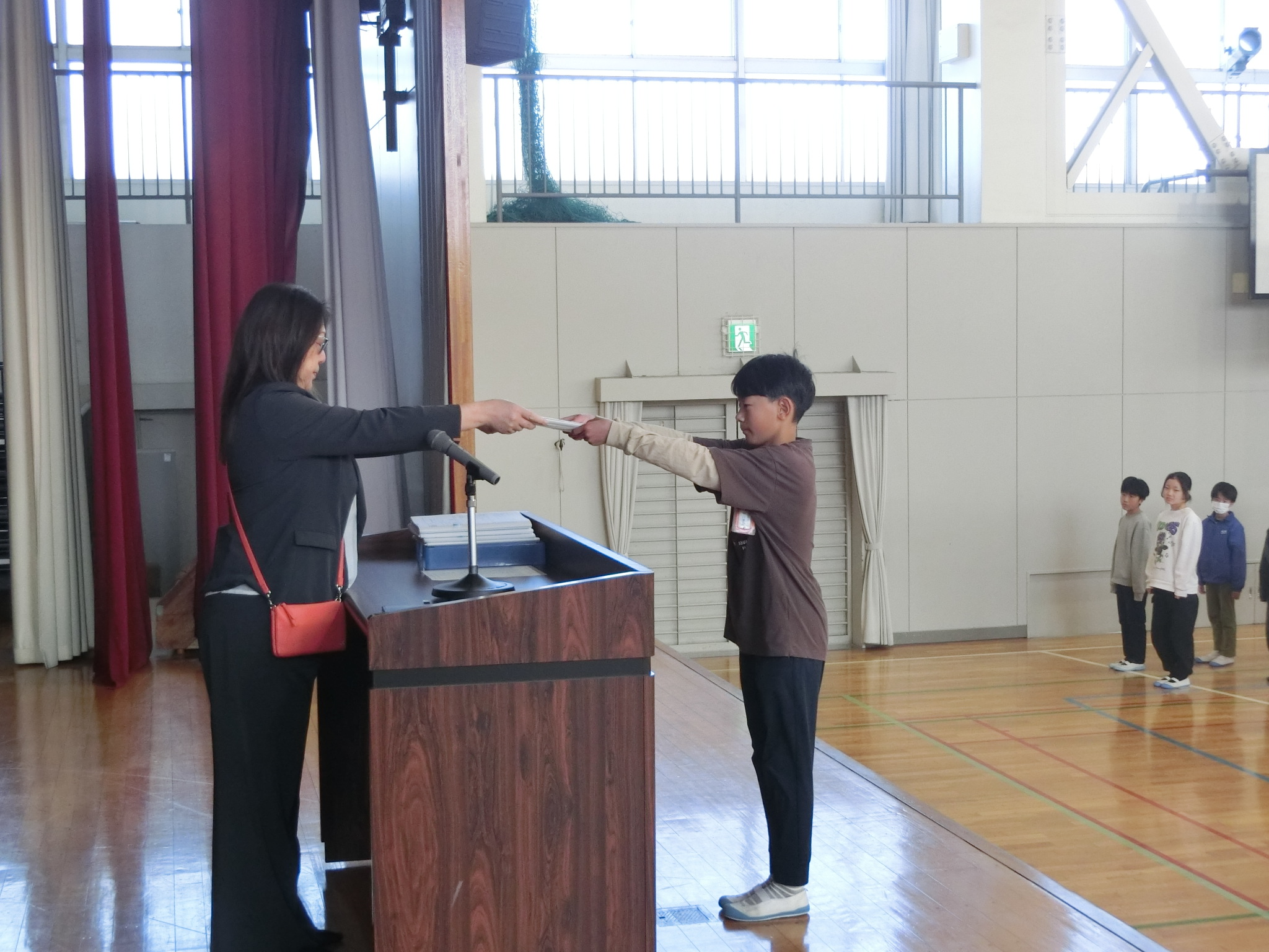 3月24日(月)、令和7年度修了式を行いました。各学年の代表が校長先生より「修了証」を受け取り、その後、校長先生のお話を聞きました。今年1年で、できるようになったこと、挑戦したことがたくさんあると思います。次の学年でも、しっかりと頑張っていきましょう!