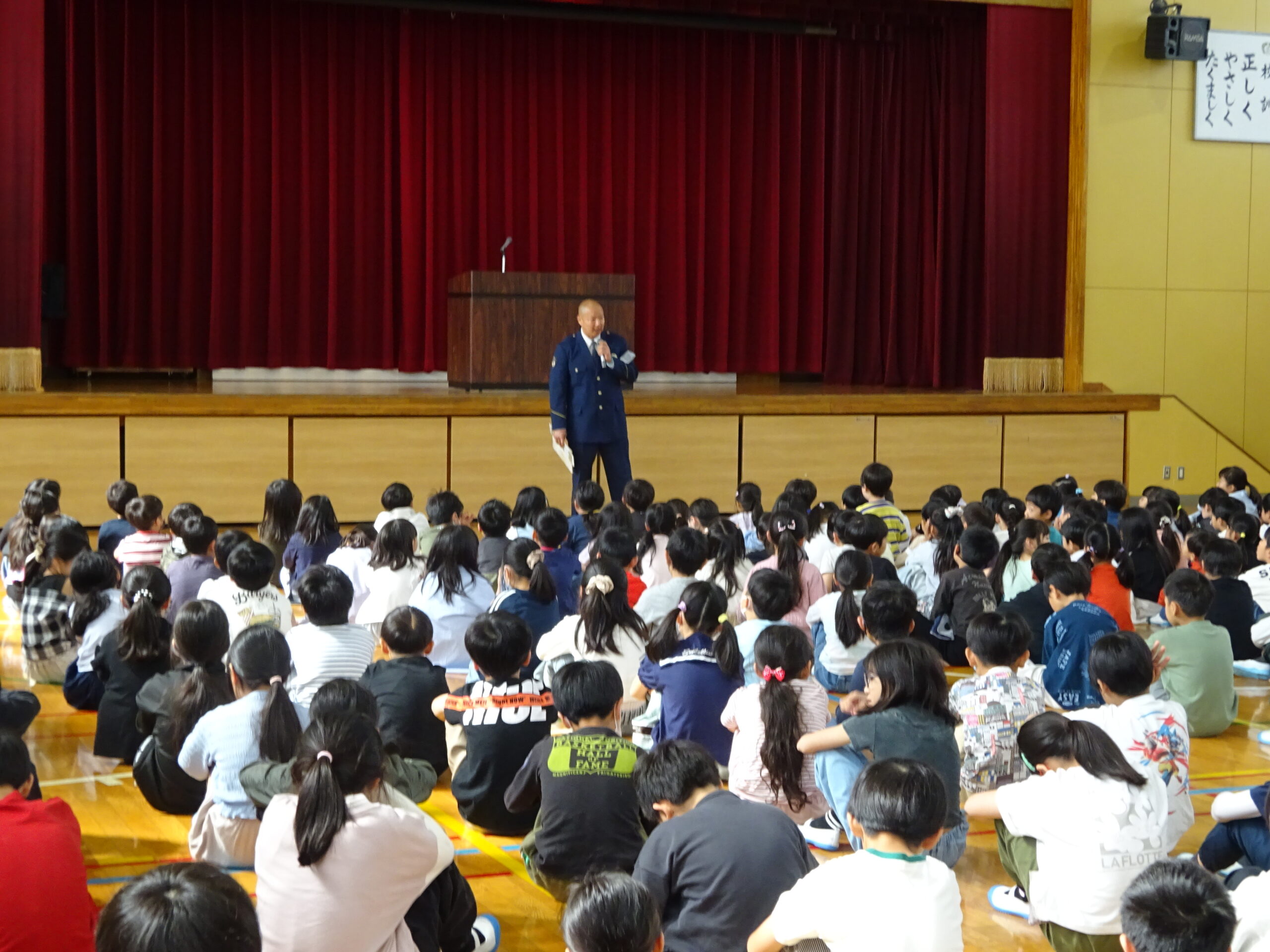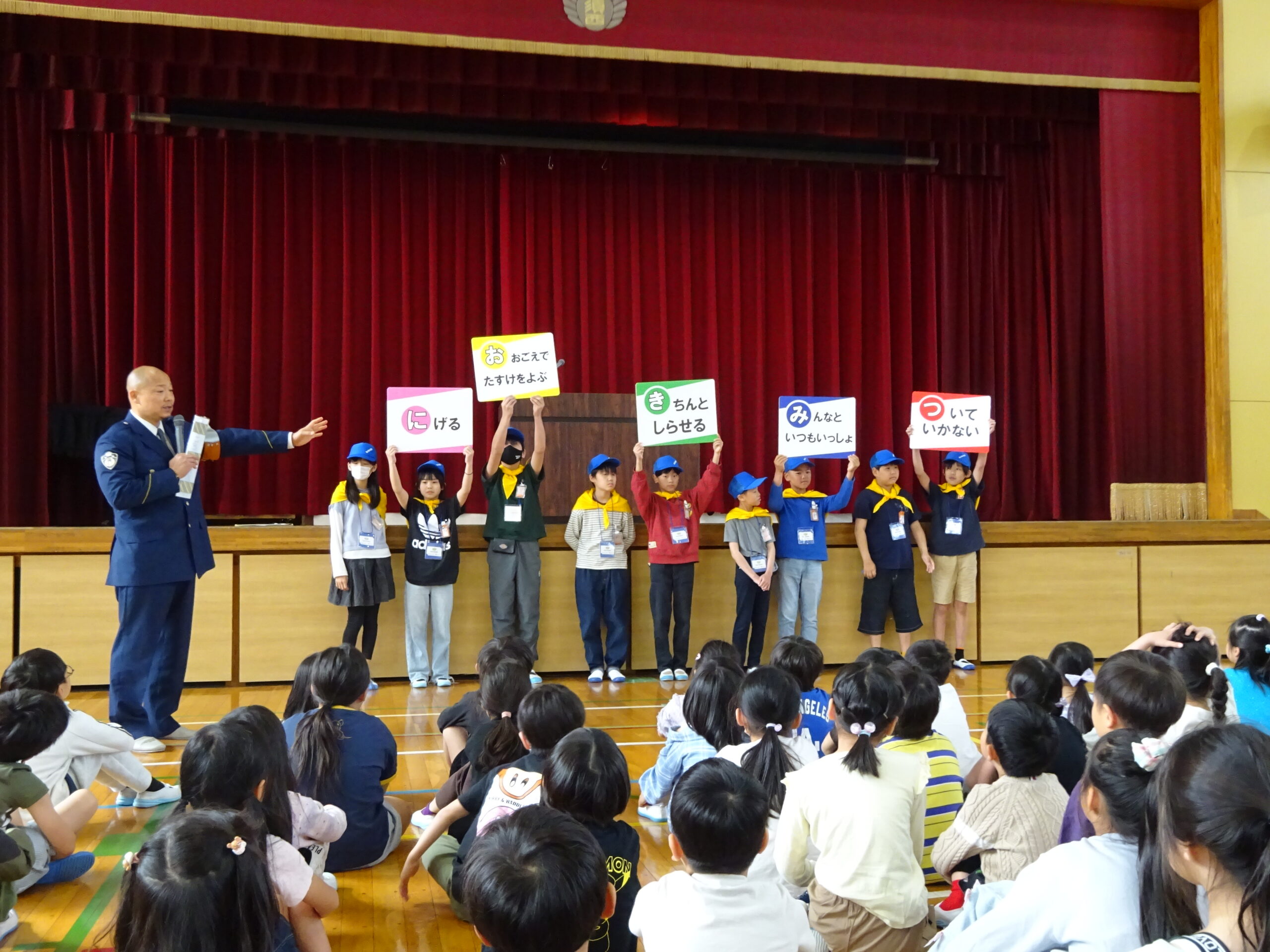 また、本校に委嘱されている防犯少年団とともに、連れ去り防止の合言葉「つみきおに」をみんなで唱和しました。